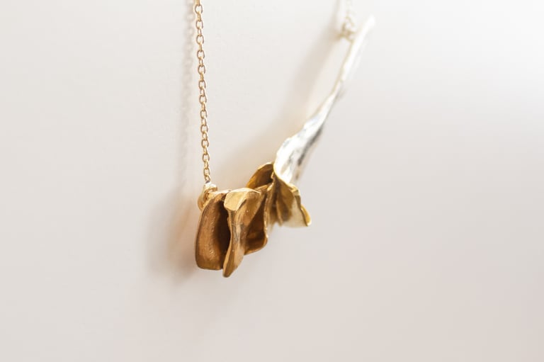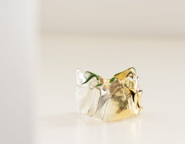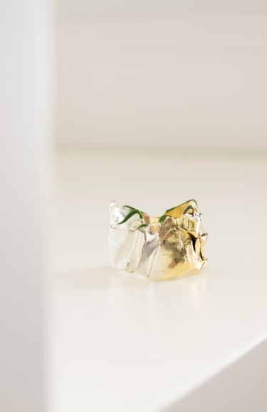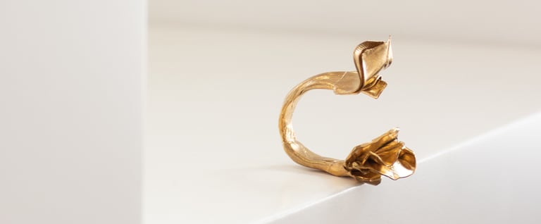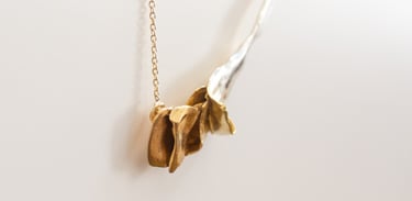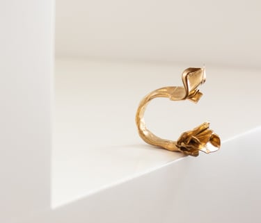 Inspirada na botânica, esta coleção nasce do olhar intuitivo de Lia Gonçalves sobre a joalharia: formas cruas, imperfeitas, que recusam representar literalmente a delicadeza da natureza.