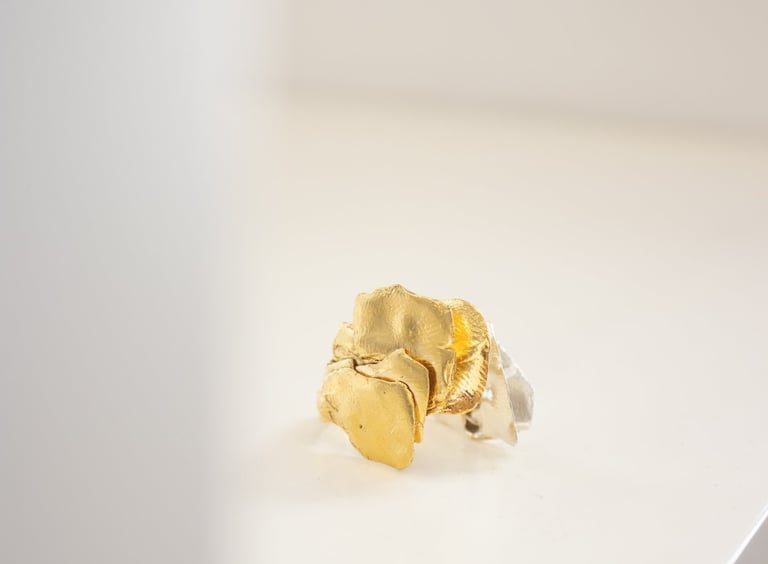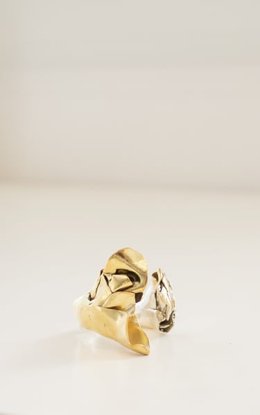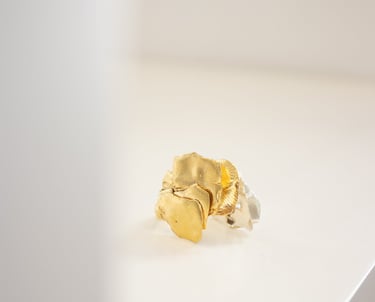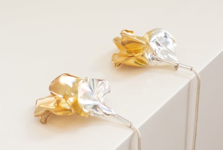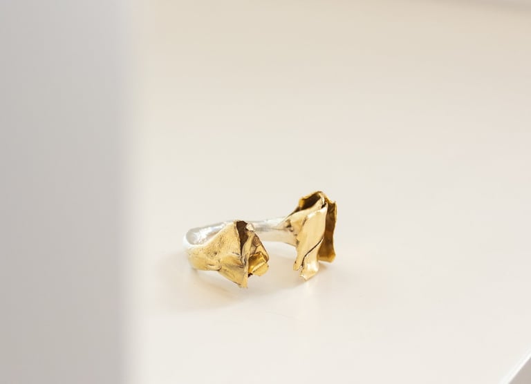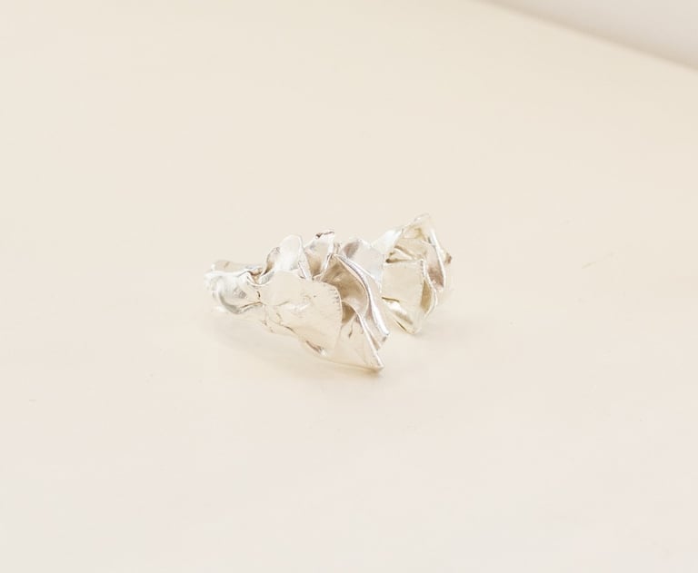 Pétalas brutas sobrepõem-se ao acaso, como se crescessem livremente, dando origem a peças únicas: orgânicas, irrepetíveis e profundamente sensoriais.