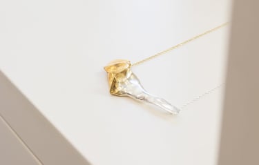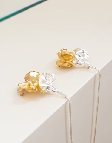 Inspirada na botânica, esta coleção nasce do olhar intuitivo de Lia Gonçalves sobre a joalharia: formas cruas, imperfeitas, que recusam representar literalmente a delicadeza da natureza.
